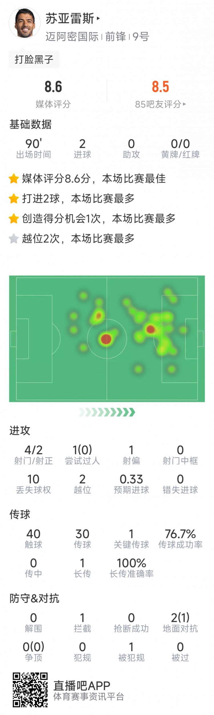 Trong vòng này của UEFA UEFA League, Miami International thua Chicago Flames 3-5. Suarez đã ghi hai lần trong trò chơi này và sau đây là dữ liệu của anh ấy trong trò chơi này: 90 phút của thời gian trò chơi